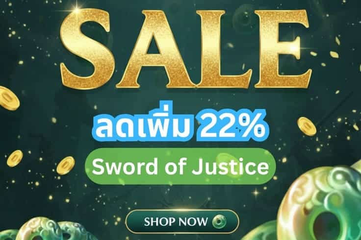 ราคาแพ็กเติม Sword of Justice — ลดเพิ่มสูงสุด 22%